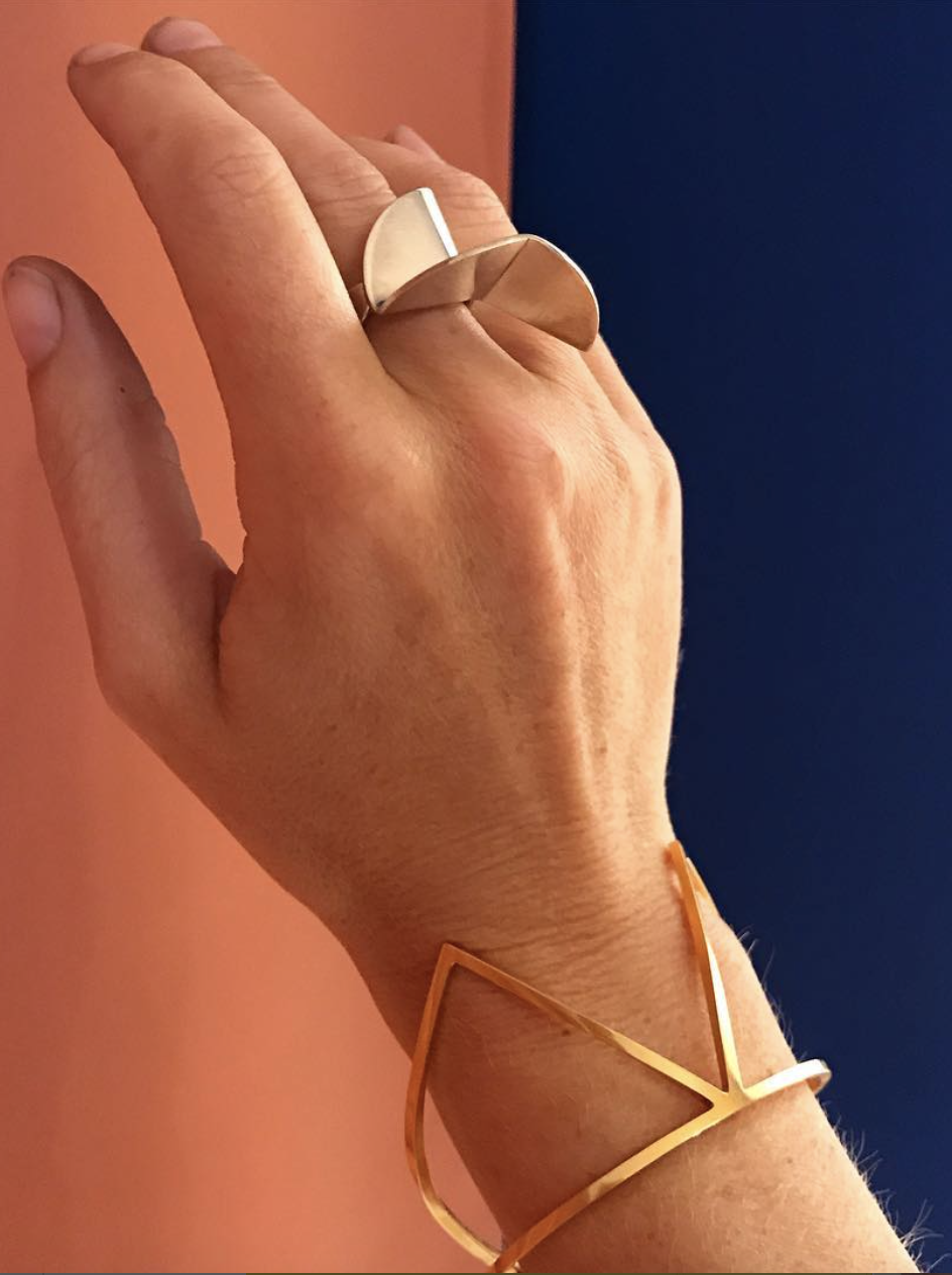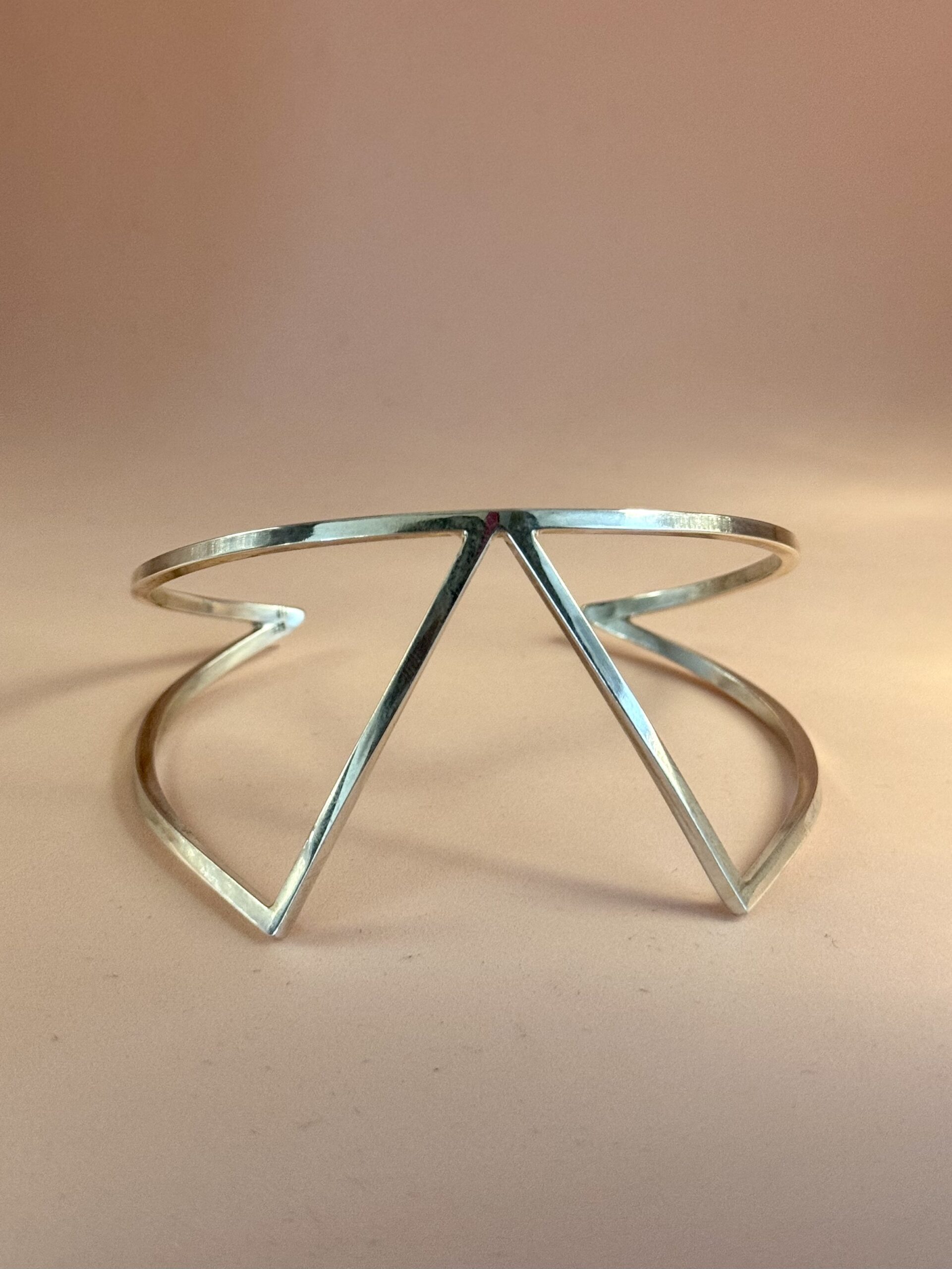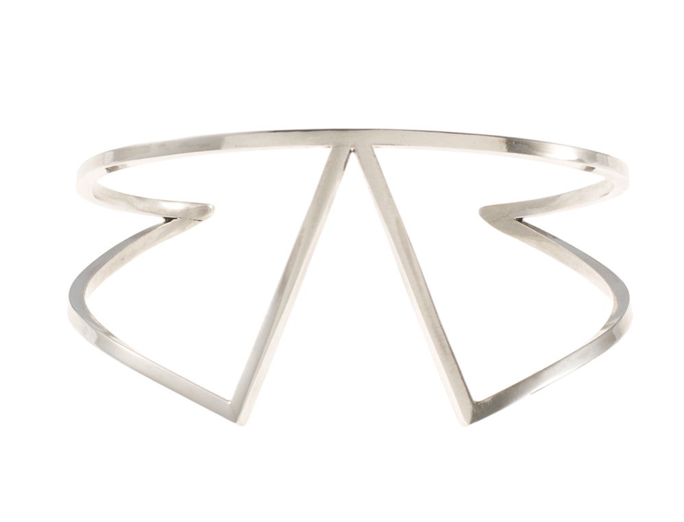 The peak bracelet is one of the more chunky pieces in the collections. It makes a nice completion of a long sleeved blouse and is also beautiful on a bare arm