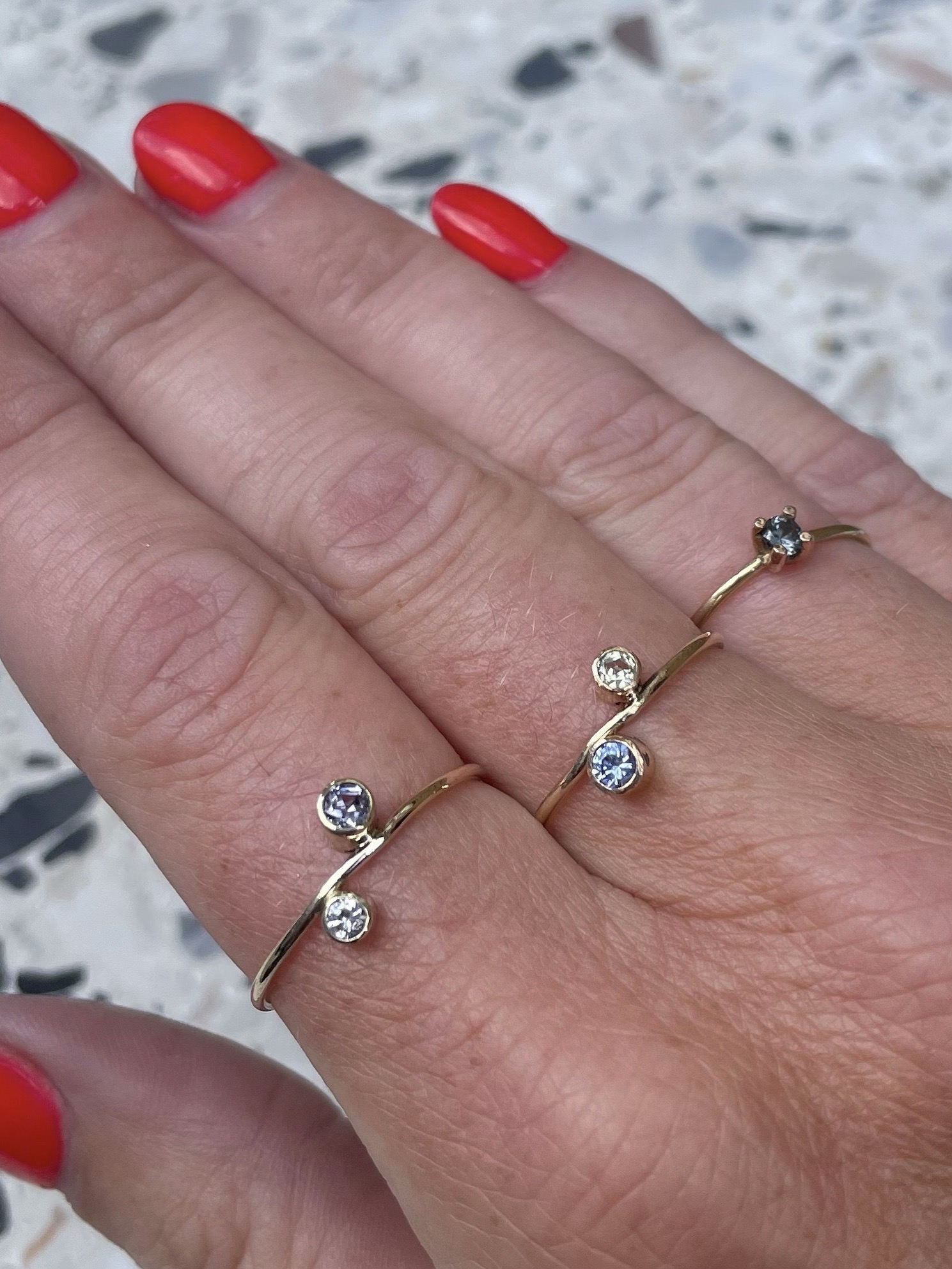 I always have versions of the precious stone rings in the shop. if you want a different size or other stones please dont hesitate to ask or come by the shop to see my collection of stones. The precious stones are all natural stones – not heated. I work with a lot of different types – from diamonds and sapphires, to pretty emeralds and magic color changing vanadiums