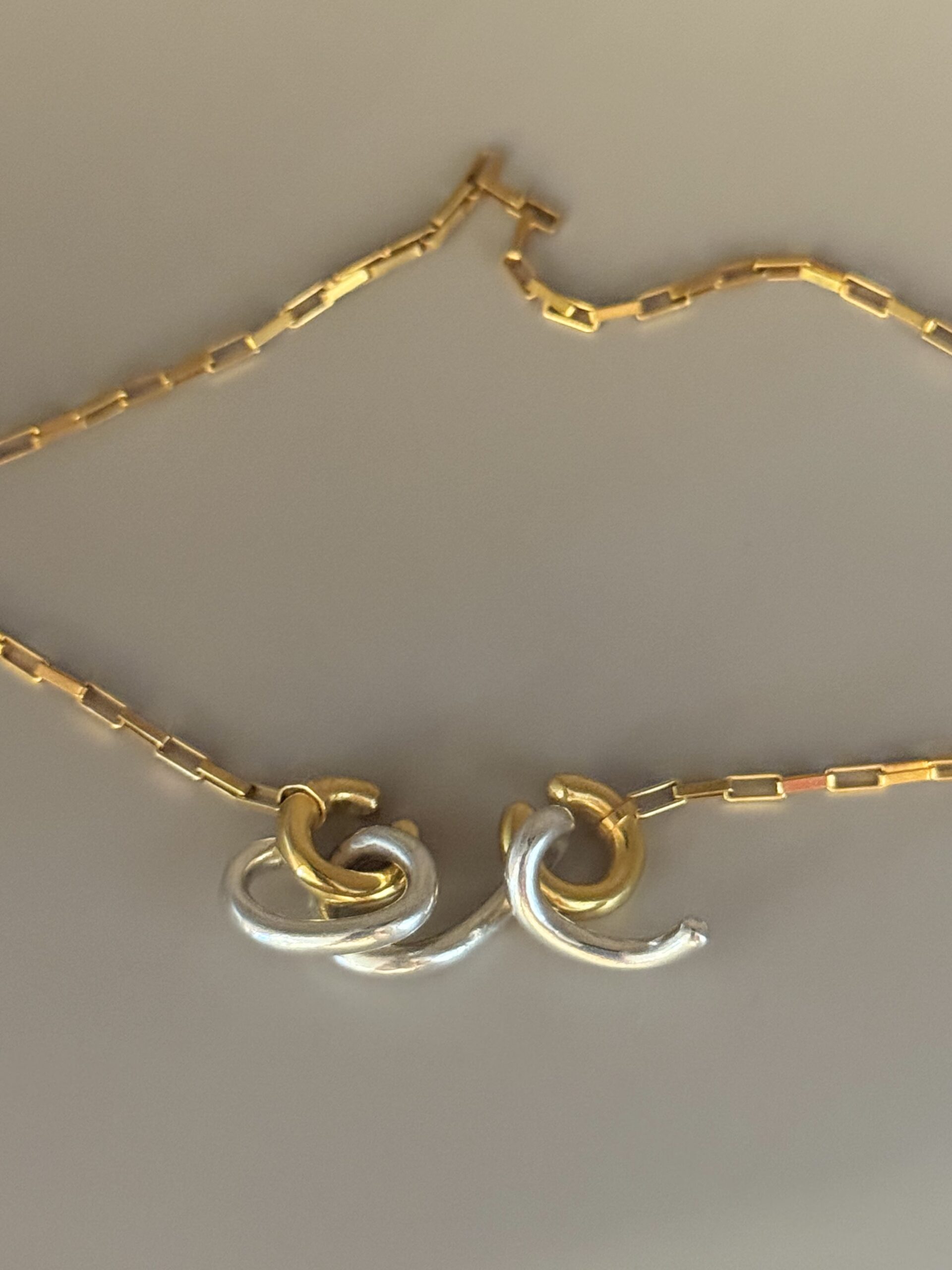 The point of departure is quite minimalistic. The collection has endless ways to be combined and leaves it up the the user to ‘keep it simple’ or extravagant. Some element has freshwater pearls attached which adds a touch of femininity. You can also get an almost punk look by attaching silver elements that would resemble a solid chain.