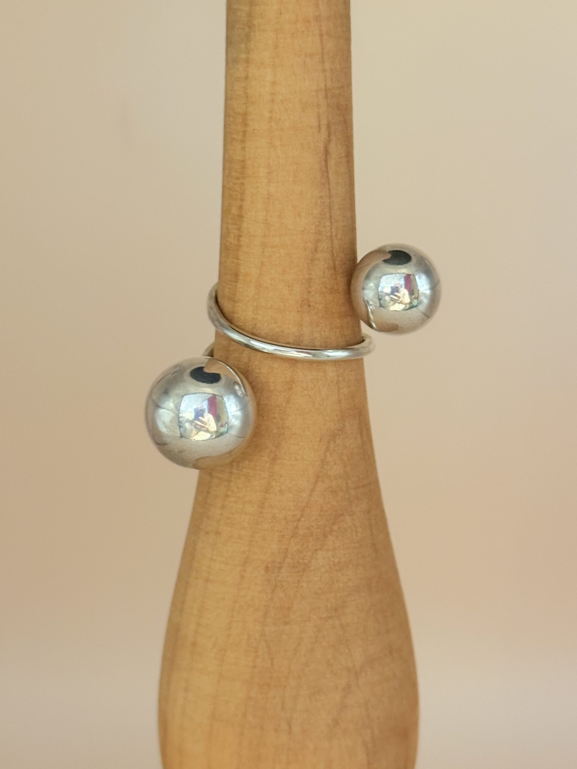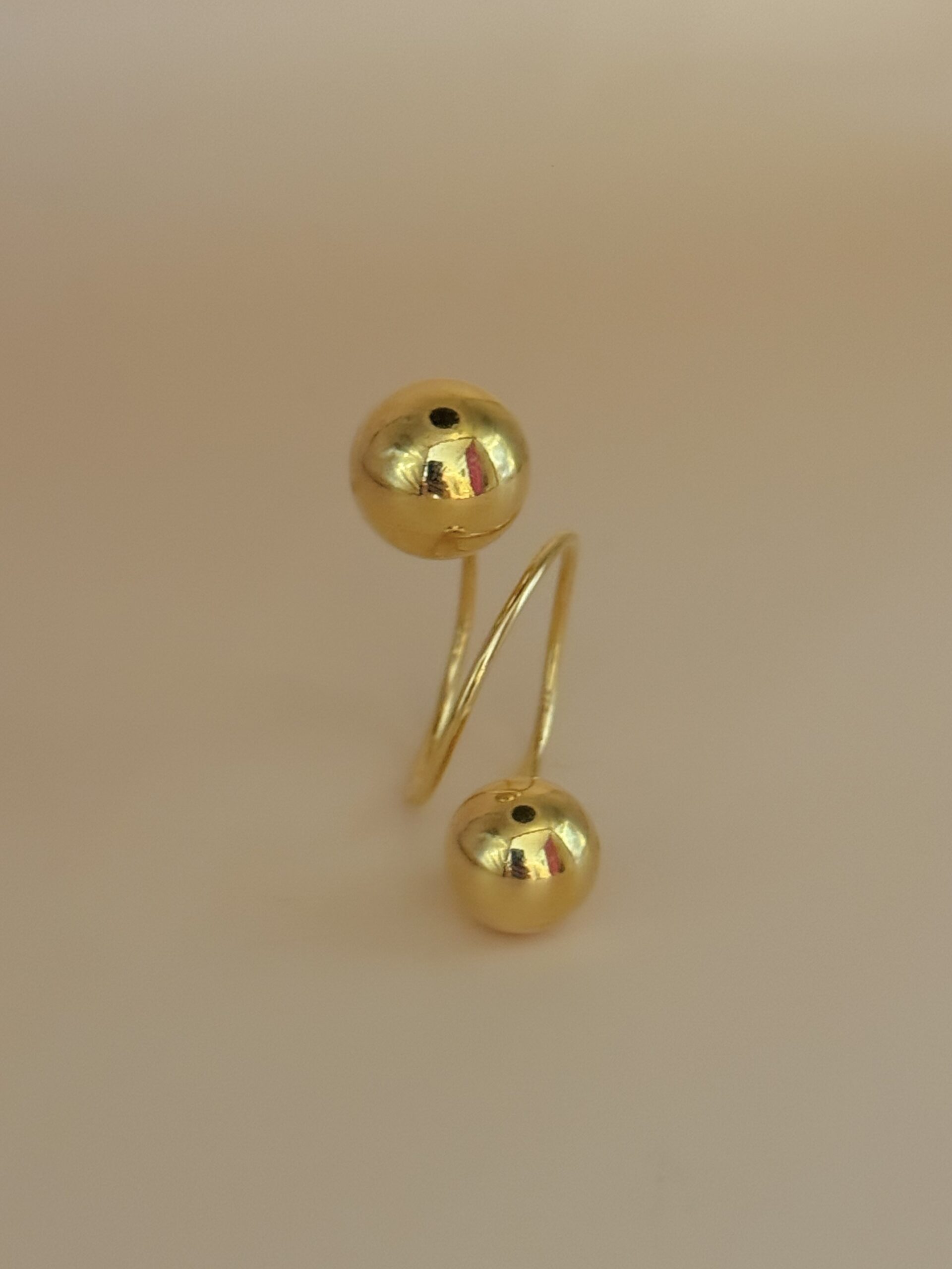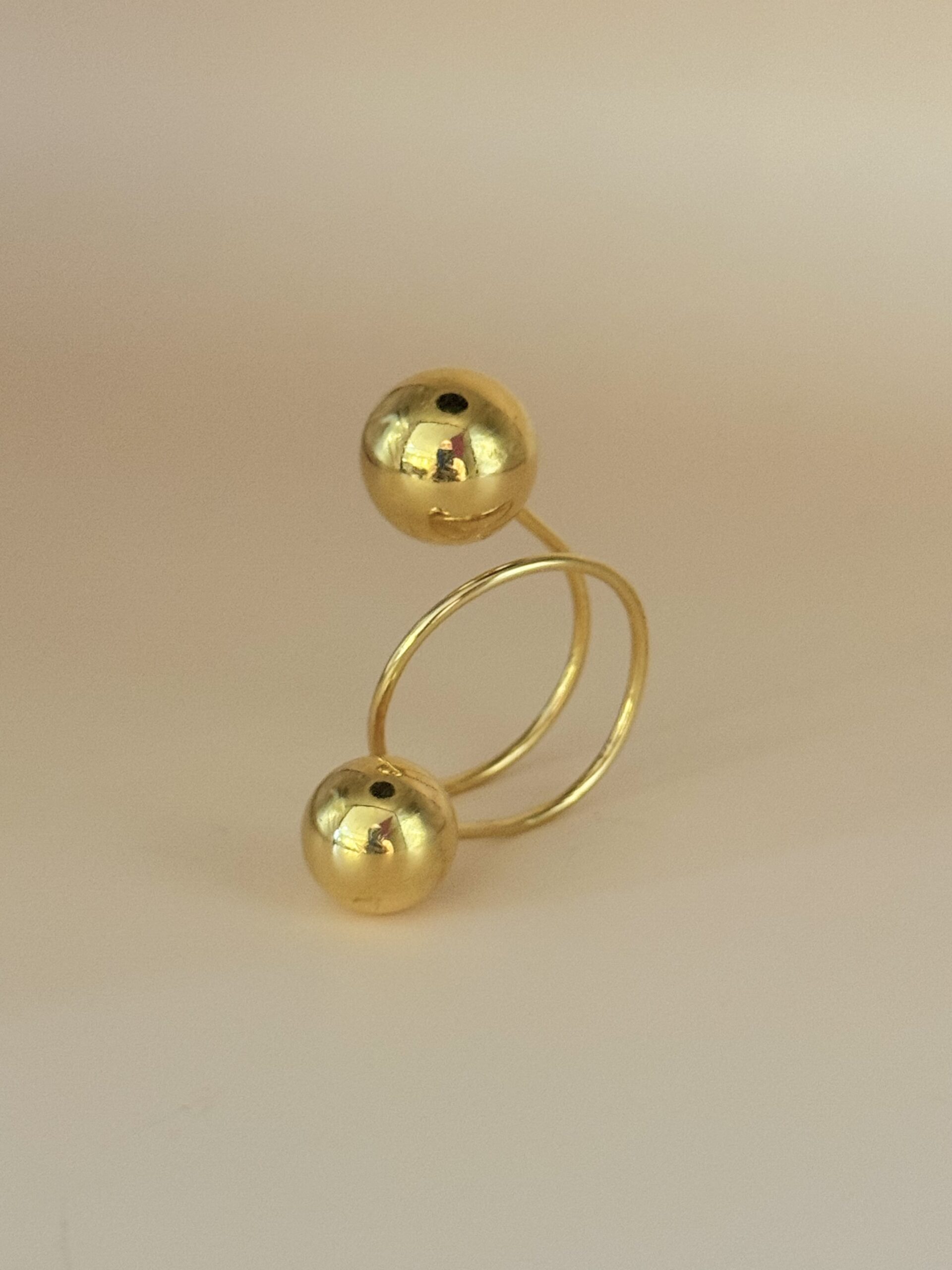 Two spheres – different in size – at the end of a spiral ring